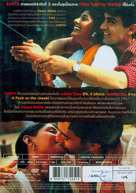 520   ^aEarth คือเรื่องที่ 2 ของภาพยนตร์ไตรภาคชุด Elements Trilogy  อีก 2 เรื่องคือ Fire (เพลิงไฟแห่งรัก) และ Water (สายน้ำแห่งรัก) อันเป็นเรื่องราวว่าด้วยธาตุแห่งชีวิต โดยหนังชุดนี้กำกับโดย Deepa Metha ผู้กำกับสาวแกร่งแห่งอินเดียที่ทนต่อแรงกดดันมหาศาลในการทำภาพยนตร์เรื่อง Fire  ถึงขั้นถูกขู่ฆ่า แต่เธอก็ยังไม่ย่อท้อ ยังลงมือสร้างสรรค์ผลงานชิ้นนี้ออกมา Earth ได้นำเสนอเรื่องราวที่เกิดขึ้นจริงในลาฮอร์ ปี 1947 เมื่อคนชาติเดียวกัน แต่ต่างศาสนาเกิดลุกฮือขึ้นมาเพื่อแบ่งแยกประเทศ โดยนำเสนอเรื่องราวผ่านตัวละคร 1 หญิง 2 ชาย ที่มีความแตกต่างกันในเรื่องศาสนา แม้เมื่อก่อนจะเคยอยู่ด้วยกันและเป็นเพื่อนกันมา แต่เมื่อเกิดเรื่องราวแบ่งแยกขึ้น พวกเขาก็ต้องต่อสู้กัน โดยจำต้องลืมความรักและมิตรภาพที่เคยมีต่อกันมา