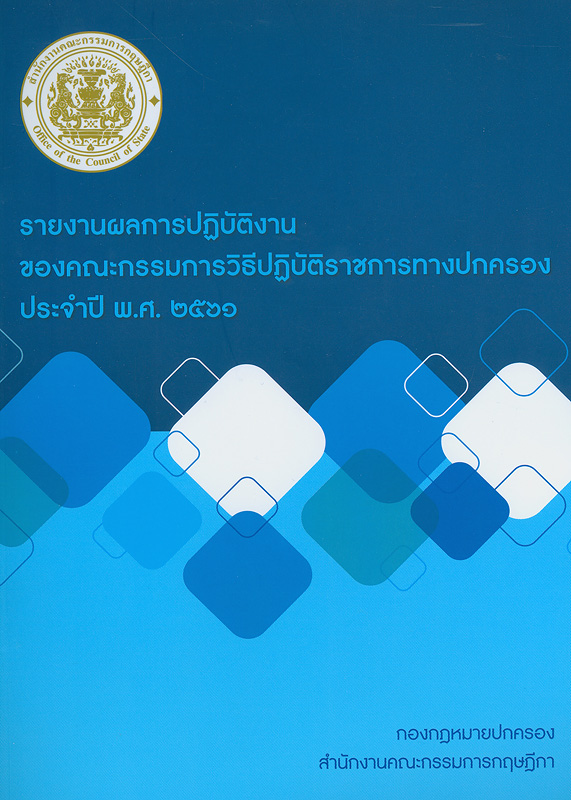 245 10^aรายงานผลการปฏิบัติงานของคณะกรรมการวิธีปฏิบัติราชการทางปกครอง ประจำปี 2561 /^cสำนักกฎหมายปกครอง สำนักงานคณะกรรมการกฤษฎีกา