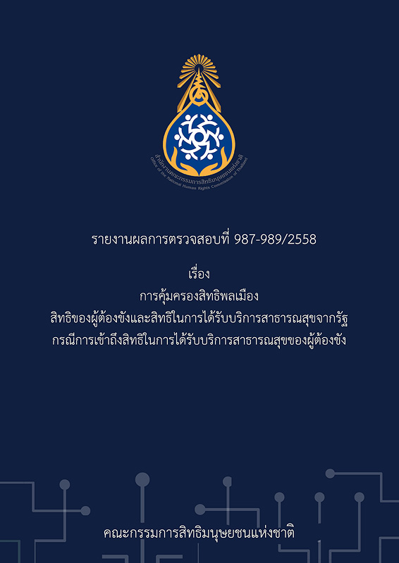 รายงานผลการตรวจสอบที่ 987-989/2558 เรื่อง การคุ้มครองสิทธิพลเมือง สิทธิของผู้ต้องขังและสิทธิในการได้รับบริการสาธารณสุขจากรัฐ กรณีการเข้าถึงสิทธิในการได้รับบริการสาธารณสุขของผู้ต้องขัง / คณะกรรมการสิทธิมนุษยชนแห่งชาติ