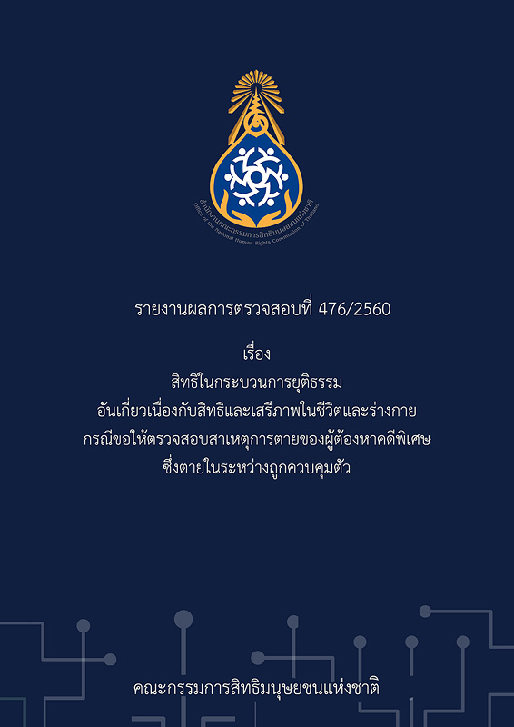 รายงานผลการตรวจสอบที่ 476/2560 สิทธิในกระบวนการยุติธรรม อันเกี่ยวเนื่องกับสิทธิและเสรีภาพในชีวิตและร่างกาย กรณีขอให้ตรวจสอบสาเหตุการตายของผู้ต้องหาคดีพิเศษซึ่งตายในระหว่างถูกควบคุมตัว / คณะกรรมการสิทธิมนุษยชนแห่งชาติ