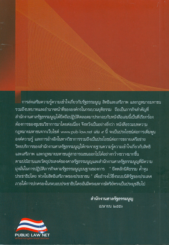 รวมบทความกฎหมายมหาชนจากเว็บไซต์ www.pub-law.net. เล่ม 9 / บรรณาธิการ, นันทวัฒน์ บรมานันท์