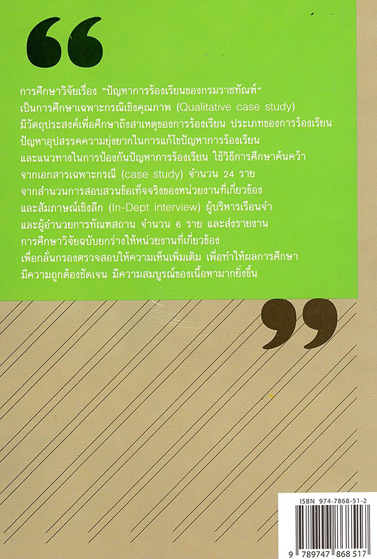 รายงานการศึกษาวิจัยเรื่องปัญหาการร้องเรียนของกรมราชทัณฑ์