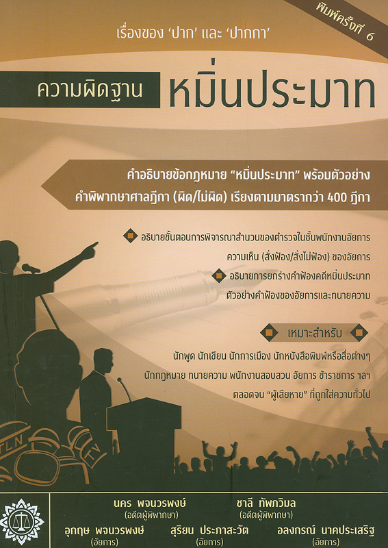 ความผิดฐานหมิ่นประมาท / นคร พจนวรพงษ์... [และคนอื่น ๆ]