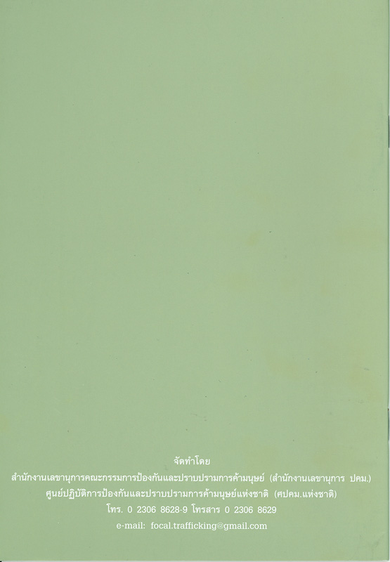 พระราชบัญญัติป้องกันและปราบปรามการค้ามนุษย์ พ.ศ. 2551 / ศูนย์ปฏิบัติการป้องกันและปราบปรามการค้ามนุษย์แห่งชาติสำนักงานเลขานุการคณะกรรมการป้องกันและปราบปรามการค้ามนุษย์ กระทรวงการพัฒนาสังคมและความมั่นคงของมนุษย์