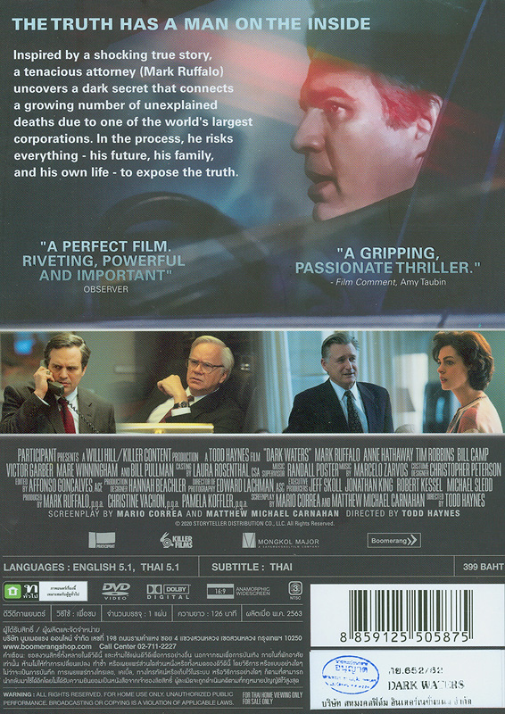 520   ^aDark Waters ภาพยนตร์ดราม่าเข้มข้นที่สร้างมาจากเรื่องจริง โรเบิร์ต บิลอตตา ทนายความดีเดือดผู้ยกความเสี่ยงต่อทั้งชีวิตตนเองและครอบครัวเพื่อเดินหน้ากัดไม่ปล่อยต่อคดีความของบริษัทยักษ์ใหญ่ ดูปองท์ ผู้ผลิตสารเคมีในรัฐเวสต์เวอร์จิเนียที่ซ่อนความลับดำมืดอันเกี่ยวข้องกับการเสียชีวิตของผู้บริสุทธิ์ภายในเมืองหลายคน เนื่องด้วยสาเหตุการรั่วไหลของสารเคมีอันตรายร้ายแรงสู่ย่านที่พักอาศัย