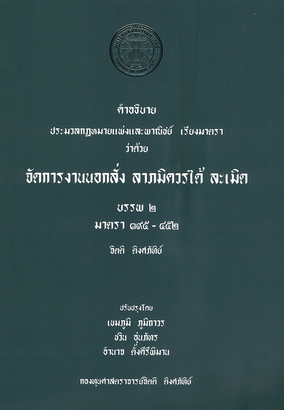 กรุงเทพฯ : กองทุนศาสตราจารย์จิตติ ติงศภัทิย์, 2565.