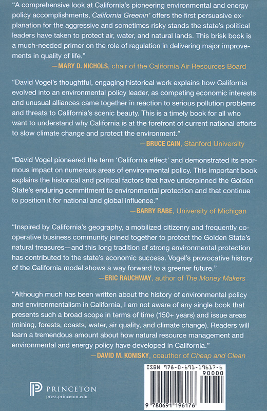 A political history of environmental policy and regulation in California, from the Gold Rush to the present. Over the course of its 150-year history, California has successfully protected its scenic wilderness areas, restricted coastal oil drilling, regulated automobile emissions, preserved coastal access, improved energy efficiency, and, most recently, addressed global climate change. How has this state, more than any other, enacted so many innovative and stringent environmental regulations over such a long period of time? The first comprehensive look at California's history of environmental leadership, California Greenin' shows why the Golden State has been at the forefront in setting new environmental standards, often leading the rest of the nation.