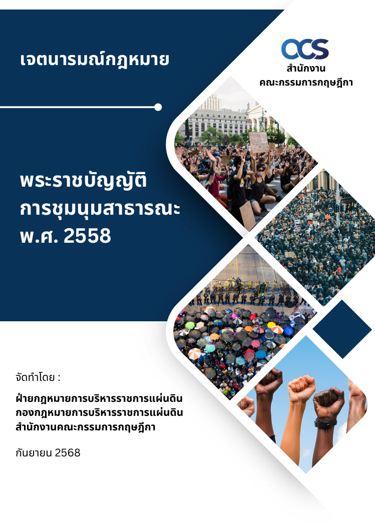 เจตนารมณ์กฎหมายพระราชบัญญัติการชุมนุมสาธารณะ พ.ศ. 2558/ ฝ่ายกฎหมายการบริหารราชการแผ่นดิน กองกฎหมายการบริหารราชการแผ่นดิน สำนักงานคณะกรรมการกฤษฎีกา