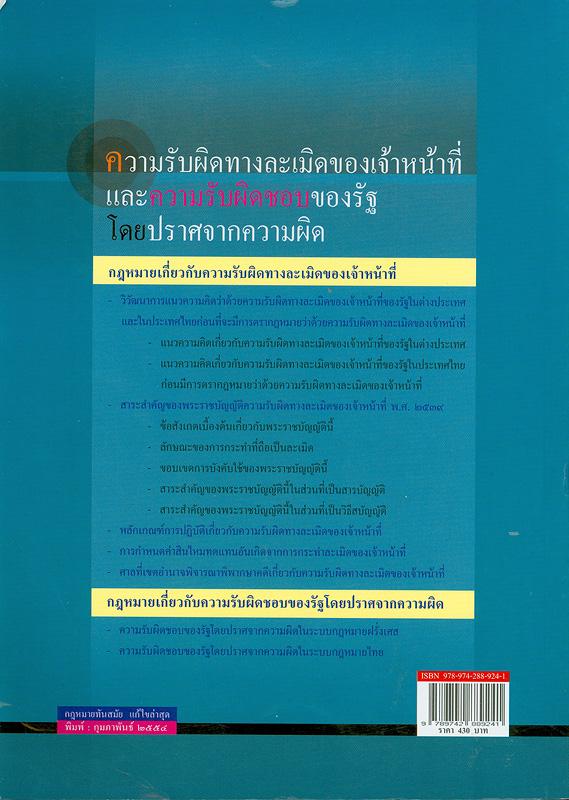 245 10^aคำอธิบายกฎหมายเกี่ยวกับความรับผิดทางละเมิดของเจ้าหน้าที่และความรับผิดชอบของรัฐโดยปราศจากความผิด /^cชาญชัย แสวงศักดิ์