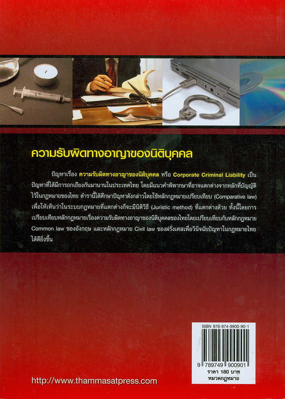 500   ^aปรับปรุงรายงานการวิจัยเรื่อง ความรับผิดทางอาญาของนิติบุคคล : ศึกษาเพื่อหาข้อเสนอทางนิติวิธีสำหรับประเทศไทยโดยเปรียบเทียบกับกฎหมายอังกฤษและฝรั่งเศส.