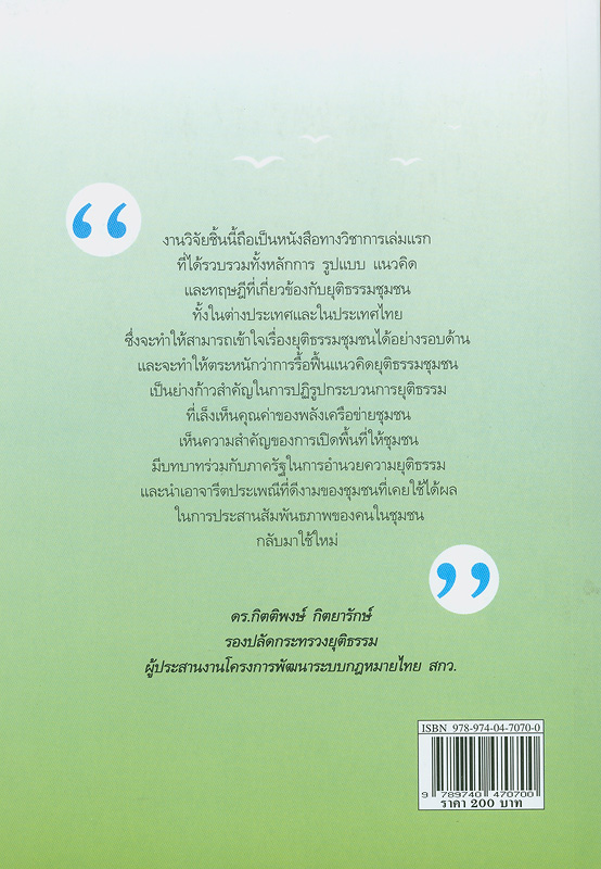 ยุติธรรมชุมชน : การเปิดพื้นที่ของชุมชนในการอำนวยความยุติธรรม / จุฑารัตน์ เอื้ออำนวย, สุทธิ สุขยิ่ง, มูฮัมหมัดรอฟีอี มูซอ
