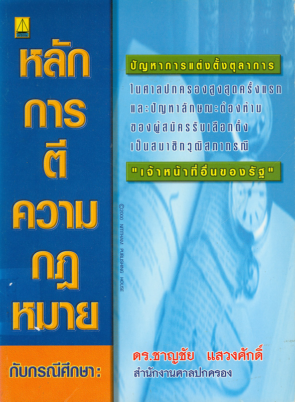 หลักการตีความกฎหมายกับกรณีศึกษา : ปัญหาการแต่งตั้งตุลาการในศาลปกครองสูงสุดครั้งแรก และปัญหาลักษณะต้องห้ามของผู้สมัครรับเลือกตั้งเป็นสมาชิกวุฒิสภากรณี "เจ้าหน้าที่อื่นของรัฐ" / ชาญชัย แสวงศักดิ์