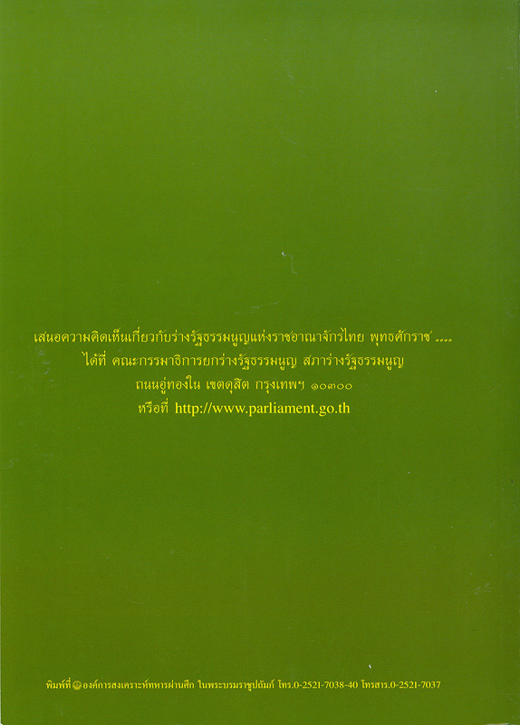 สาระสำคัญของร่างรัฐธรรมนูญฉบับใหม่พร้อมตารางเปรียบเทียบกับรัฐธรรมนูญฯ พุทธศักราช 2540 : ฉบับรับฟังความคิดเห็น / คณะกรรมาธิการยกร่างรัฐธรรมนูญสภาร่างรัฐธรรมนูญ