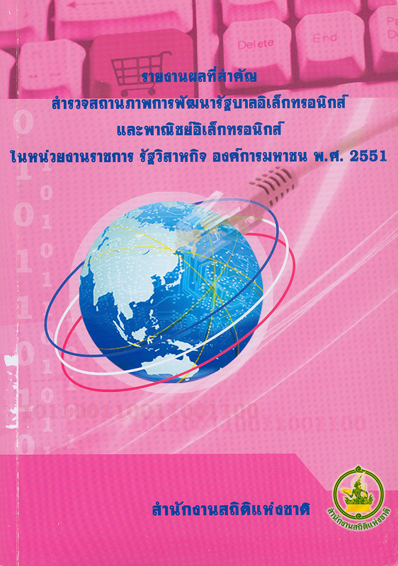 รายงานผลที่สำคัญสำรวจสถานภาพการพัฒนารัฐบาลอิเล็กทรอนิกส์ และพาณิชย์อิเล็กทรอนิกส์ในหน่วยงานราชการ รัฐวิสาหกิจ องค์การมหาชน พ.ศ. 2551 / สำนักสถิติพยากรณ์ สำนักงานสถิติแห่งชาติ