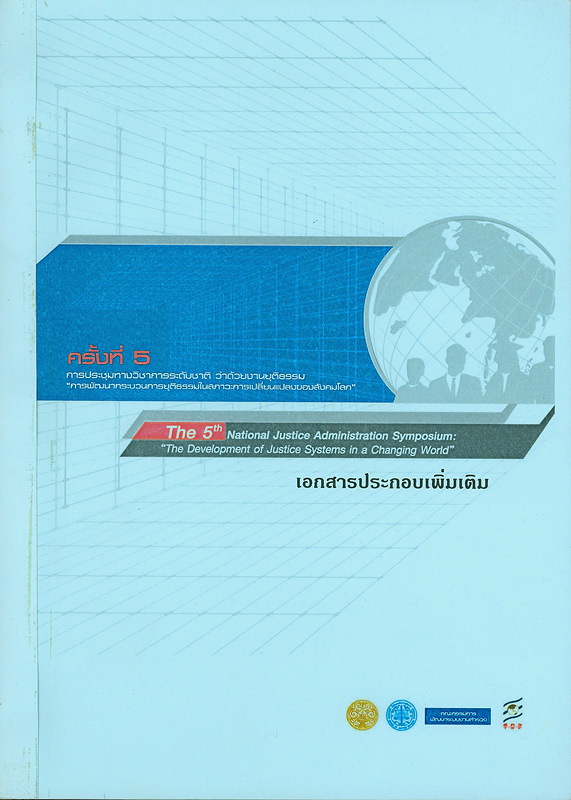 รายงานการศึกษาวิจัยเพื่อนำเสนอในการประชุมทางวิชาการระดับชาติว่าด้วยงานยุติธรรม ครั้งที่ 5 "การพัฒนากระบวนการยุติธรรมในสภาวะการเปลี่ยนแปลงของสังคมโลก" 4-5 กันยายน 2550 ณ ศูนย์การประชุมอิมแพ็ค เมืองทองธานี อำเภอปากเกร็ด จังหวัดนนทบุรี/ สำนักงานกิจการยุติธรรม
