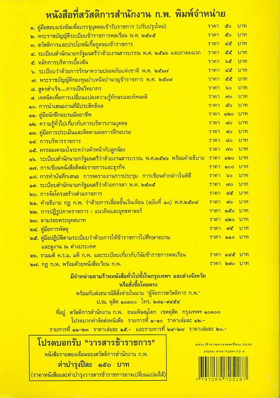 กรุงเทพฯ : สวัสดิการสำนักงาน ก.พ., 2542.
