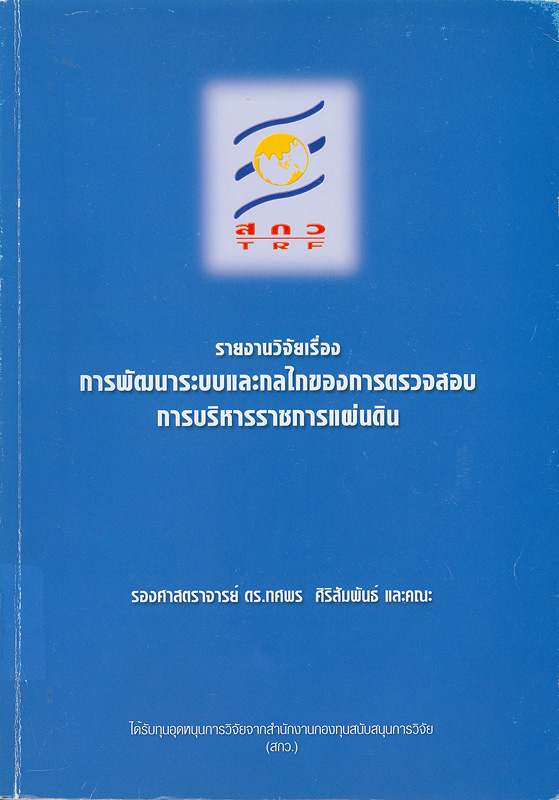 รายงานวิจัยเรื่อง การพัฒนาระบบและกลไกของการตรวจสอบการบริหารราชการแผ่นดิน / คณะผู้วิจัย, ทศพร ศิริสัมพันธ์ ... [และคนอื่น ๆ]