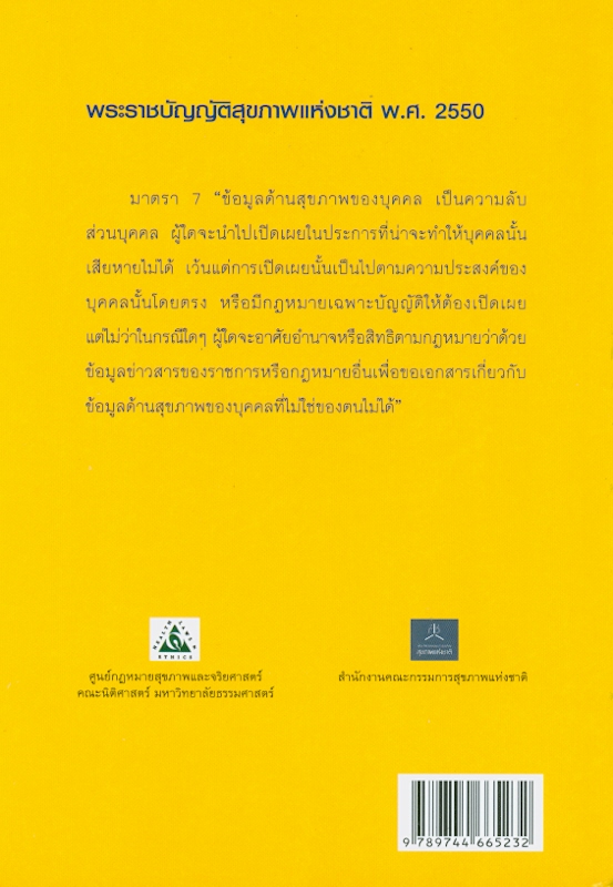 กรุงเทพฯ : ศูนย์กฎหมายสุขภาพและจริยศาสตร์ คณะนิติศาสตร์ มหาวิทยาลัยธรรมศาสตร์, 2554.