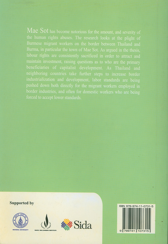Capital expansion and migrant workers : flexible labor inthe Thai-Burma Border Economy