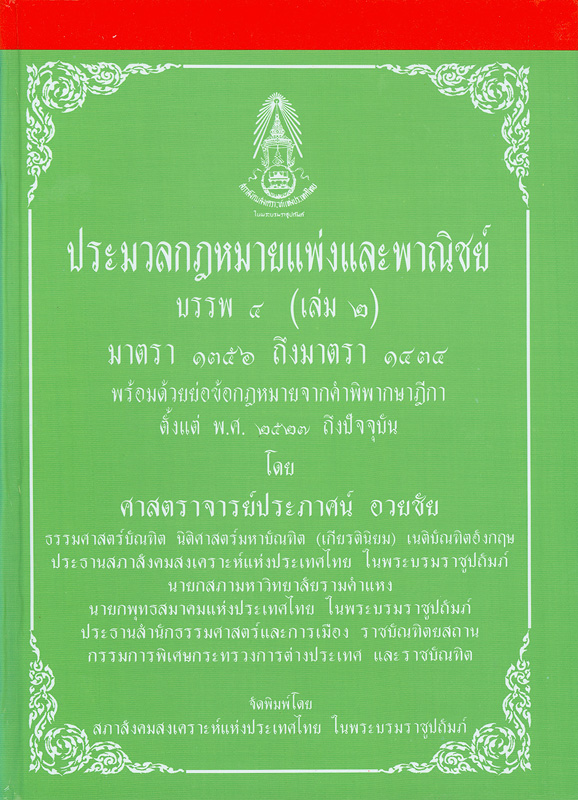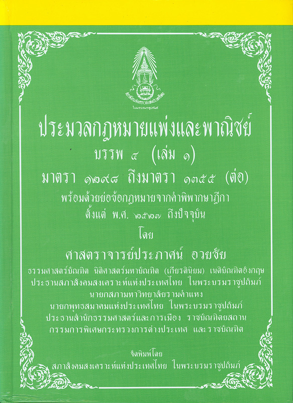 245 10^aประมวลกฎหมายแพ่งและพาณิชย์ บรรพ 4 :^bพร้อมด้วยย่อข้อกฎหมายจากคำพิพากษาฎีกาตั้งแต่ พ.ศ. 2527 ถึงปัจจุบัน /^cประภาศน์ อวยชัย