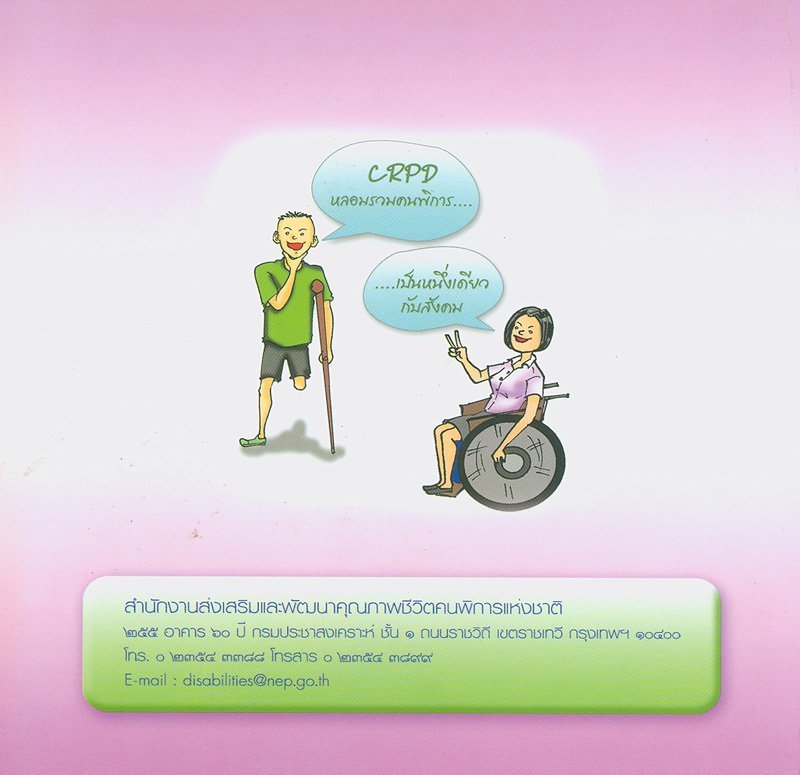 คนพิการกับสิทธิตามอนุสัญญาว่าด้วยสิทธิคนพิการ / สำนักงานส่งเสริมและพัฒนาคุณภาพชีวิตคนพิการแห่งชาติ กระทรวงการพัฒนาสังคมและความมั่นคงของมนุษย์
