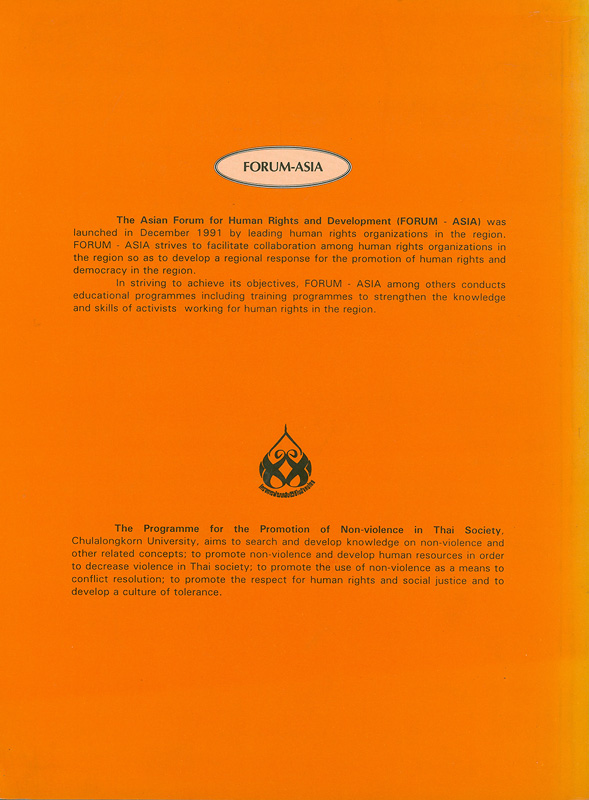 Report of the Asian Regional Study Session on Human Rights, March 16 - April 2, 1997, Bangkok, Thailand / conducted by Asian Forum for Human Rights and Development (FORUM-ASIA) and the Programme for the Promotion of Non-violencein Thai Society, Chulalongkorn University