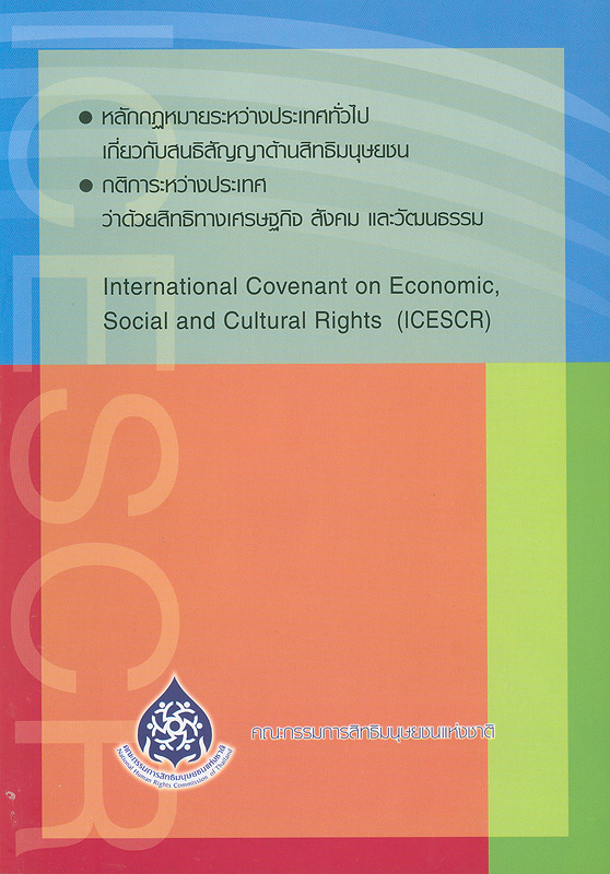 หลักกฎหมายระหว่างประเทศทั่วไปเกี่ยวกับสนธิสัญญาด้านสิทธิมนุษยชน, กติการะหว่างประเทศว่าด้วยสิทธิทางเศรษฐกิจ สังคม และวัฒนธรรม / จัดพิมพ์โดย สำนักงานคณะกรรมการสิทธิมนุษยชนแห่งชาติ