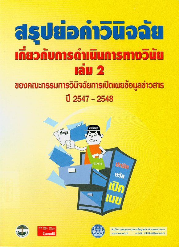 1 เล่ม 1 ของคณะกรรมการวินิจฉัยการเปิดเผยข้อมูลข่าวสาร ปี 2542 - 2546 -- เล่ม 2 ของคณะกรรมการวินิจฉัยการเปิดเผยข้อมูลข่าวสาร ปี 2547 - 2548