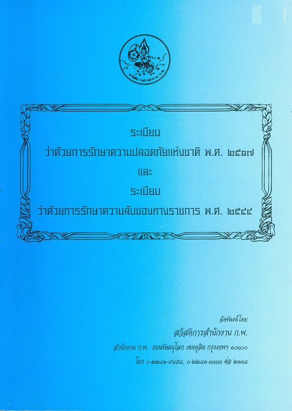 ระเบียบว่าด้วยการรักษาความปลอดภัยแห่งชาติ พ.ศ. 2517 และ ระเบียบว่าด้วยการรักษาความลับของทางราชการ พ.ศ. 2544 / สวัสดิการสำนักงาน ก.พ.