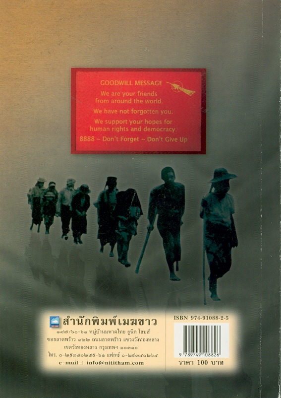 505 0 ^aความคิดพื้นฐานในการตัดสินใจไปพม่า --^tการเดินทางและคืนแรกในย่างกุ้ง --^tสำรวจพื้นที่เป้าหมาย --^tใบปลิวแห่งความปรารถนาดี --^tการสอบสวนและคุมขังเบื้องต้น --^tการสอบสวนยังดำเนินต่อไป --^tขังรวมที่เกสต์เฮ้าส์ --^tขึ้นศาลพม่า --^tเนรเทศ --^tสรุปไว้เป็นบทเรียน.