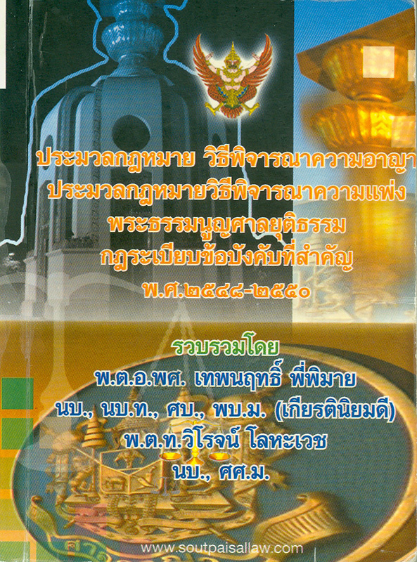 ประมวลกฎหมาย วิธีพิจารณาความอาญา ประมวลกฎหมายวิธีพิจารณาความแพ่ง พระธรรมนูญศาลยุติธรรม กฎระเบียบข้อบังคับที่สำคัญ พ.ศ. 2548-2550 / รวบรวมโดย พ.ต.อ. เทพนฤทธิ์ พี่พิมาย