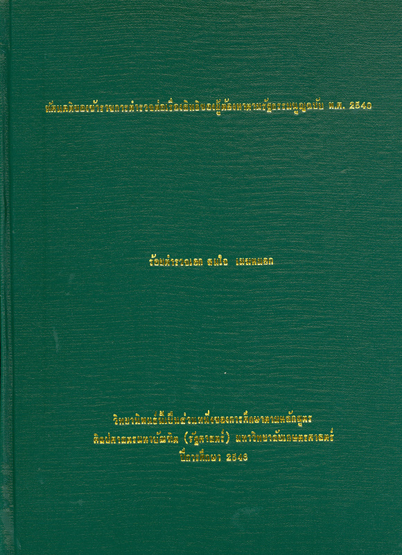 วิทยานิพนธ์ (ศศ.ม. รัฐศาสตร์) -- มหาวิทยาลัยเกษตรศาสตร์, 2546