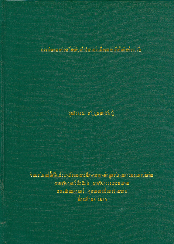 วิทยานิพนธ์ (นศ.ม.นิเทศศาสตร์)--จุฬาลงกรณ์มหาวิทยาลัย. 2540