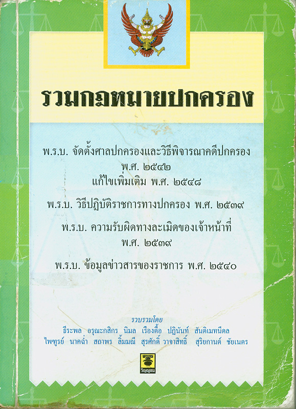 รวมกฎหมายปกครอง : พระราชบัญญัติจัดตั้งศาลปกครอง และวิธีพิจารณาคดีปกครอง พ.ศ. 2542 แก้ไขเพิ่มเติม (ฉบับที่ 3) พ.ศ. 2548 พระราชบัญญัติวิธีปฏิบัติราชการทางปกครอง พ.ศ. 2539 พระราชบัญญัติความรับผิดทางละเมิดของเจ้าหน้าที่ พ.ศ. 2539 พระราชบัญญัติข้อมูลข่าวสารของราชการ พ.ศ. 2540 / รวบรวมโดยธีระพล อรุณะกสิกร ... [และคนอื่น ๆ]