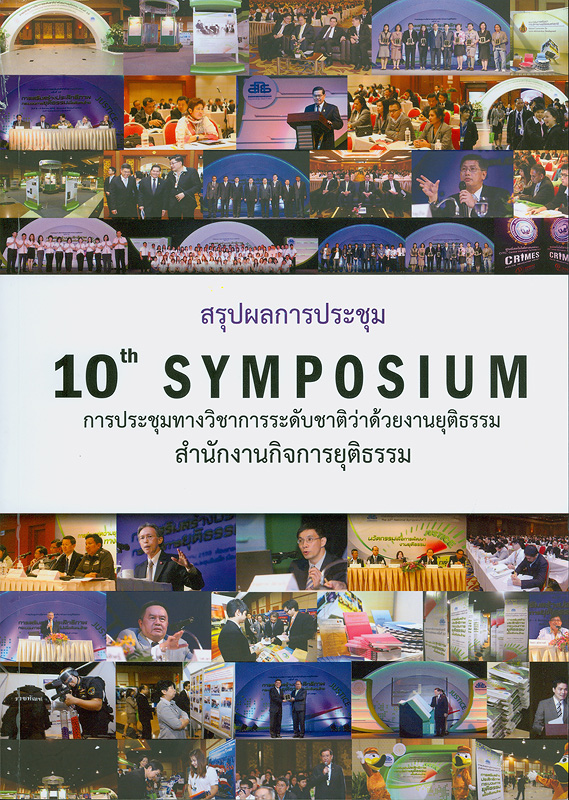 246 38^aสรุปผลการประชุมทางวิชาการระดับชาติว่าด้วยงานยุติธรรม ครั้งที่ 10 :^b8-10 สิงหาคม 2555 ณ ห้องแกรนด์ ไดมอนต์ บอลรูม ศูนย์การประชุมอิมแพ็ค เมืองทองธานี