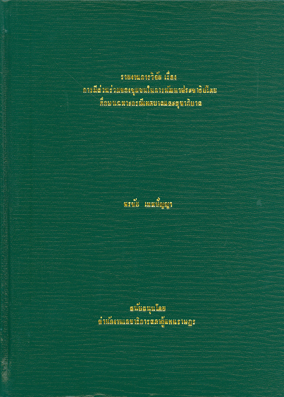 245 10^aรายงานการวิจัยเรื่อง การมีส่วนร่วมของชุมชนในการพัฒนาประชาธิปไตย ศึกษาเฉพาะกรณีเทศบาลและสุขาภิบาล /^cพรชัย เทพปัญญา