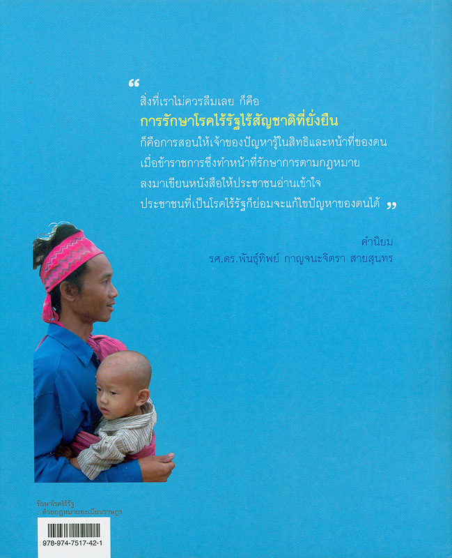 รักษาโรคไร้รัฐด้วยกฎหมายทะเบียนราษฎร์ / วีนัส สีสุข ; ปิ่นแก้ว อุ่นแก้ว, บรรณาธิการ