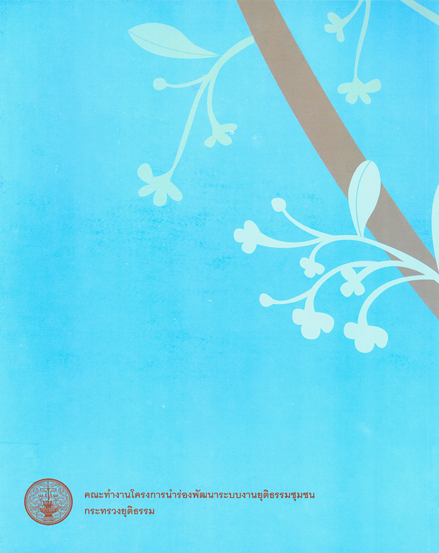 กรุงเทพฯ : คณะทำงานโครงการนำร่องพัฒนาระบบงานยุติธรรมชุมชน กระทรวงยุติธรรม, 2550.