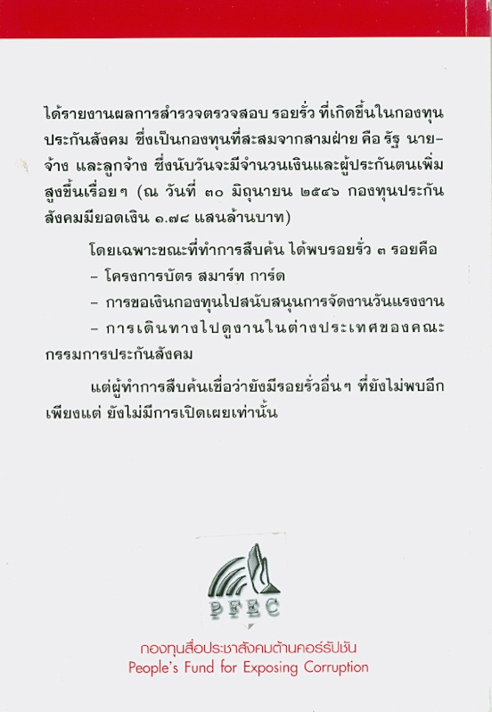245 10^aกรณีศึกษาทุจริตกองทุนประกันสังคม :^bรอยรั่วกองทุนคนจนสองแสนล้านเหลือบแรงงานสบช่องโหว่ใช้ระเบียบบริหาร แสวงหาผลประโยชน์จากสารพัดโครงการ /^cนริศสา สุขสนั่น