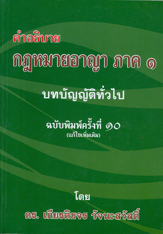 คำอธิบายกฎหมายอาญา ภาค 1 / เกียรติขจร วัจนะสวัสดิ์