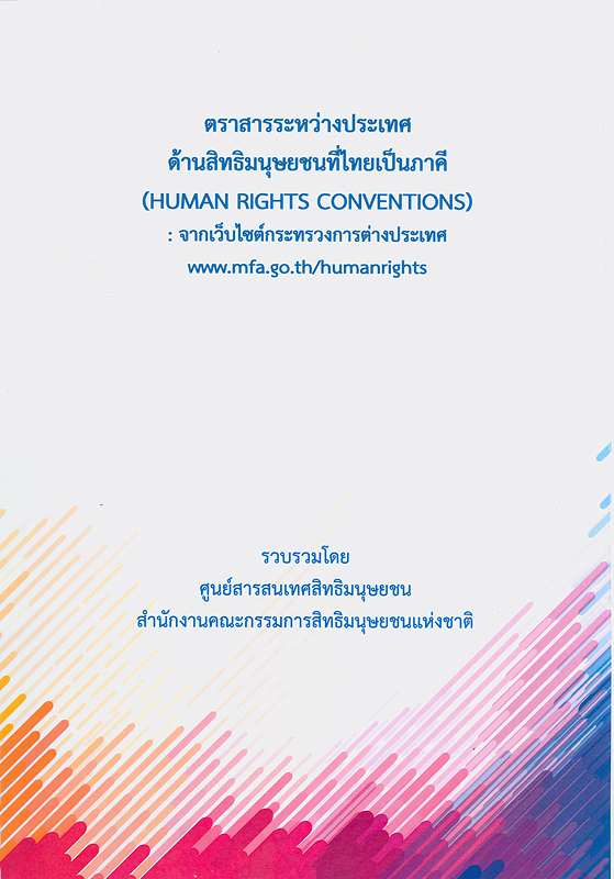 ตราสารระหว่างประเทศด้านสิทธิมนุษยชนที่ไทยเป็นภาคี : จากเว็บไซต์กระทรวงการต่างประเทศ/ รวบรวมโดย ศูนย์สารสนเทศสิทธิมนุษยชน สำนักงานคณะกรรมการสิทธิมนุษยชนแห่งชาติ
