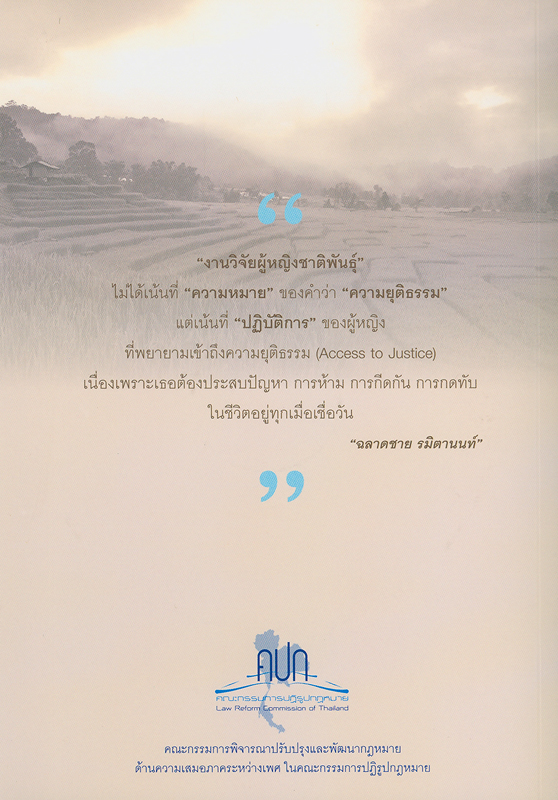 ประสบการณ์กับการเข้าถึงความยุติธรรมของผู้หญิงชาติพันธุ์/ บรรณาธิการ, วิระดา สมสวัสดิ์