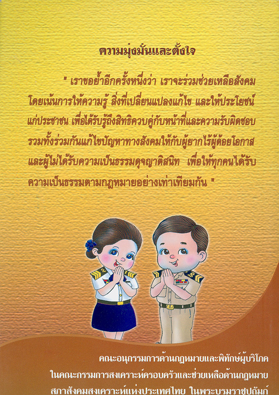 นานาสาระ : ภาค2 รู้ทันกฎหมาย/ คณะอนุกรรมการด้านกฎหมายและพิทักษ์ผู้บริโภคในคณะกรรมการสงเคราะห์ครอบครัวและช่วยเหลือด้านกฎหมาย สภาสังคมสงเคราะห์แห่งประเทศไทย ในพระราชูปถัมภ์