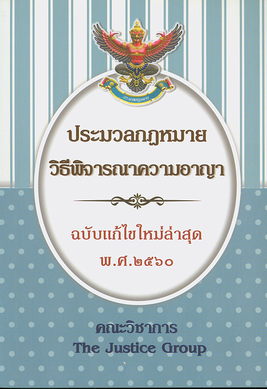 245 00^aประมวลกฎหมายวิธีพิจารณาความอาญา:^bพระธรรมนูญศาลยุติธรรม (ฉบับแก้ไขใหม่ล่าสุด พ.ศ. 2561) /^cคณะวิชาการ The Justice Group