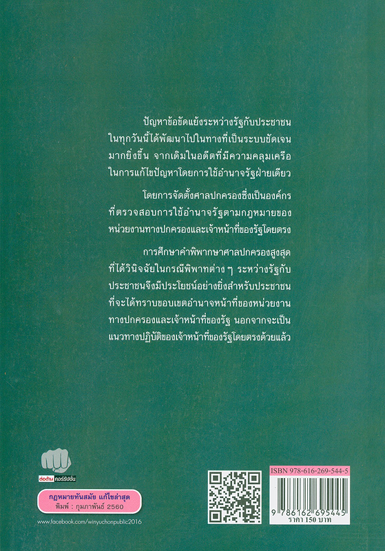 520   ^aหนังสือเล่มนี้ กล่าวถึงปัญหาข้อขัดแย้งระหว่างรัฐกับประชาชน พร้อมตัวอย่าง คำพิพากษาศาลปกครองสูงสุดที่ได้วินิจฉัยในกรณีพิพาทต่าง ๆ ระหว่างรัฐกับประชาชน มีประโยชน์อย่างยิ่งสำหรับประชาชนที่จะได้ทราบขอบเขตอำนาจหน้าที่ของหน่วยงาน ทางปกครองและเจ้าหน้าที่ของรัฐ ทั้งยังเป็นแนวทางปฏิบัติของเจ้าหน้าที่ของรัฐโดยตรงด้วย  นอกจากนี้ยังมีองค์ความรู้ทางกฎหมายที่น่าสนใจอีกมากมาย