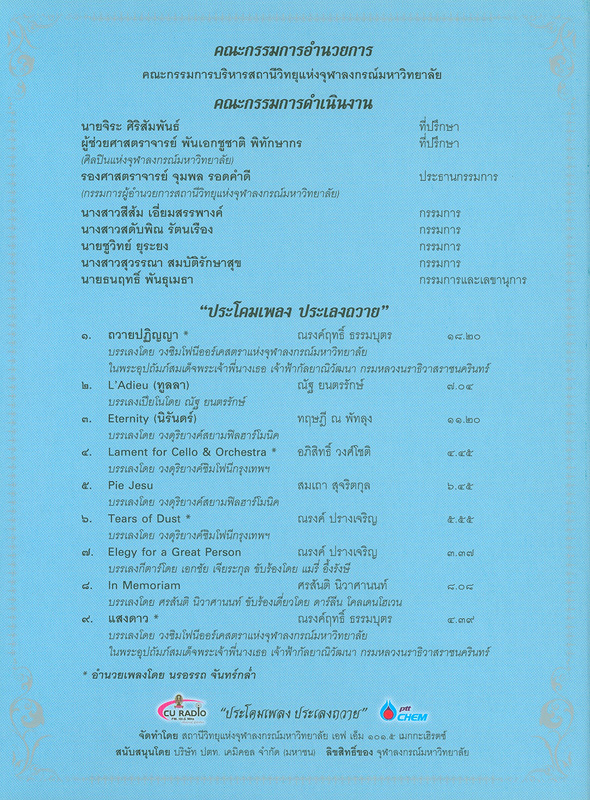 กรุงเทพฯ : สถานีวิทยุแห่งจุฬาลงกรณ์มหาวิทยาลัย, 2551.